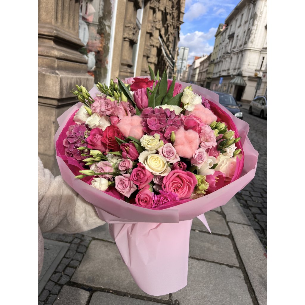 🌸 Složení květin se může měnit dle dostupnosti, výsledný vzhled a růžové ladění ale zůstávají zachovány.🎀 Ideální k narozeninám, svátku, výročí nebo jen tak – pro radost.