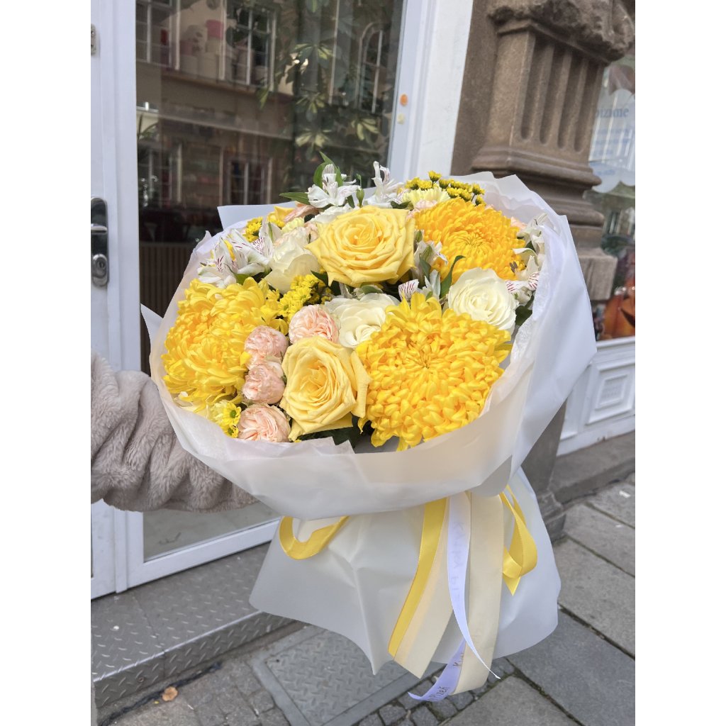 Žlutá jednohlavá chryzantéma dostupná je pouze v sezóně – září a říjen, mimo sezónu ji lze nahradit klasickými vícekvětnými chryzantémami v podobném odstínu. Vždy se snažíme o co nejvěrnější alternativu.