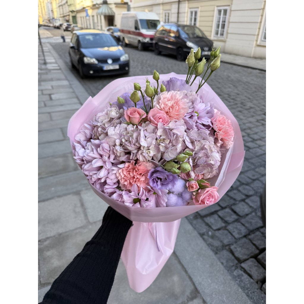 Mix kytek.Romantická kytice v něžných odstínech růžové a fialové okouzlí na první pohled svou jemností a elegancí🌸