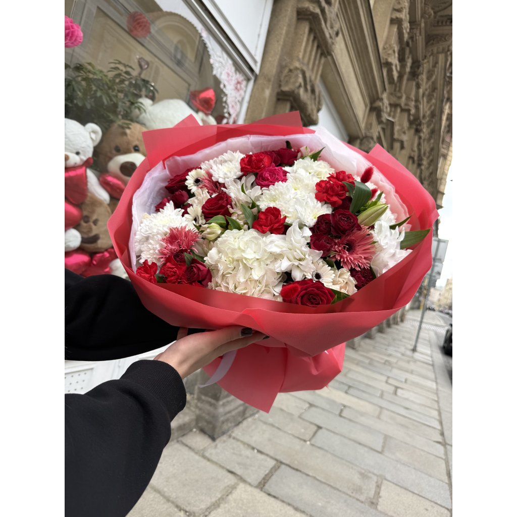Mix kytek🌸Elegantní a romantická kytice v červenobílé kombinaci, která okouzlí na první pohled🌷