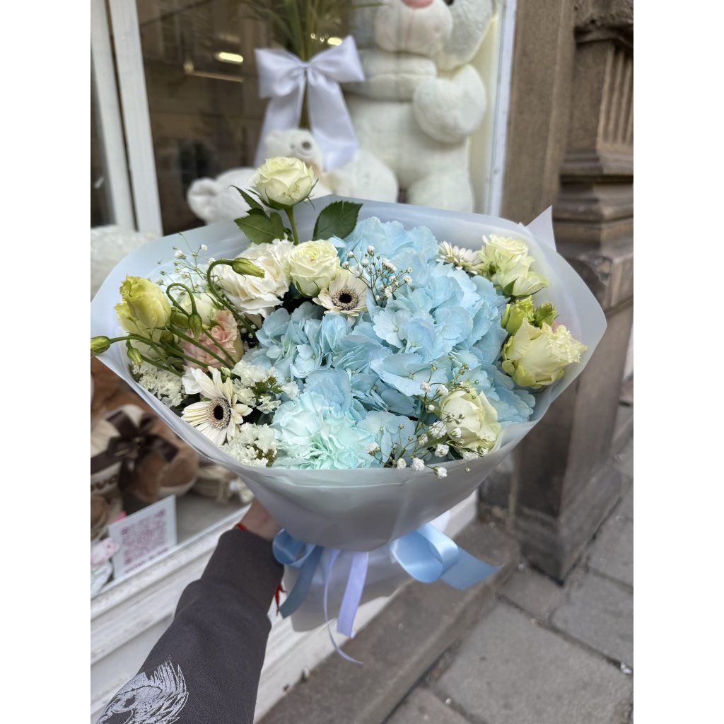 Mix kytek🌸Elegantní a jemná kytice v světle modrých tónech, která působí něžně, luxusně a zároveň svěže🌷