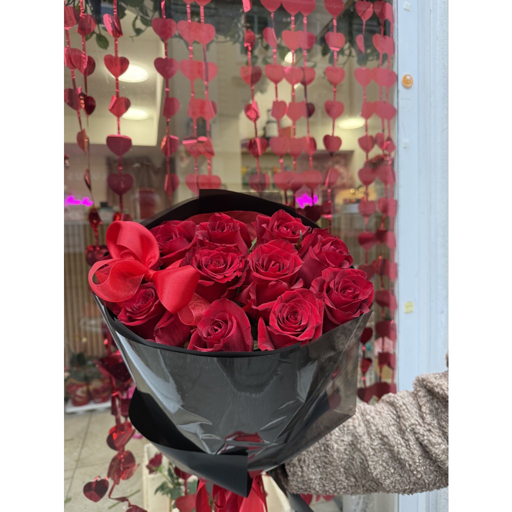 11 ks růží Ever red 80cm s krásnou mašlí v