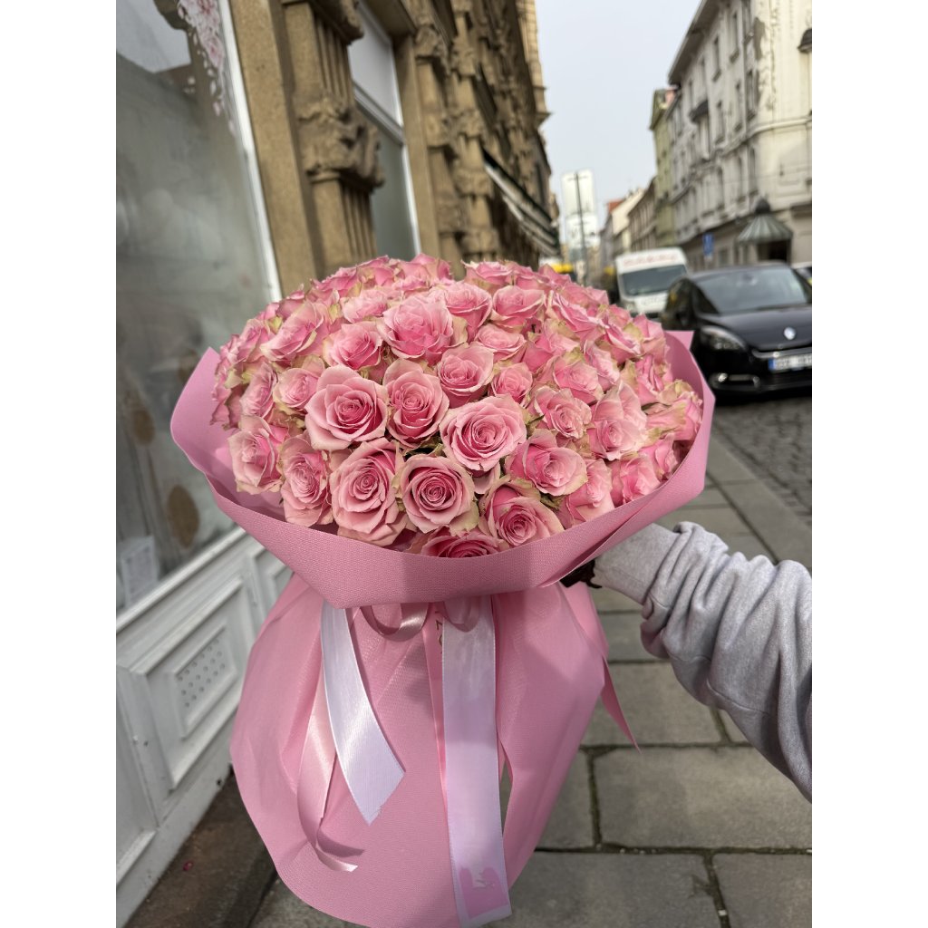 Tato kytice ze 51 kusů růží odrůdy Athena (délka 60 cm) působí elegantně, čistě a velkolepě zároveň. Růžové růže Athena mají jemně krémový nádech, kompaktní květ a vysokou výdrž – ideální pro slavnostní příležitosti, svatby, výročí nebo jako výraz lásky a úcty.
