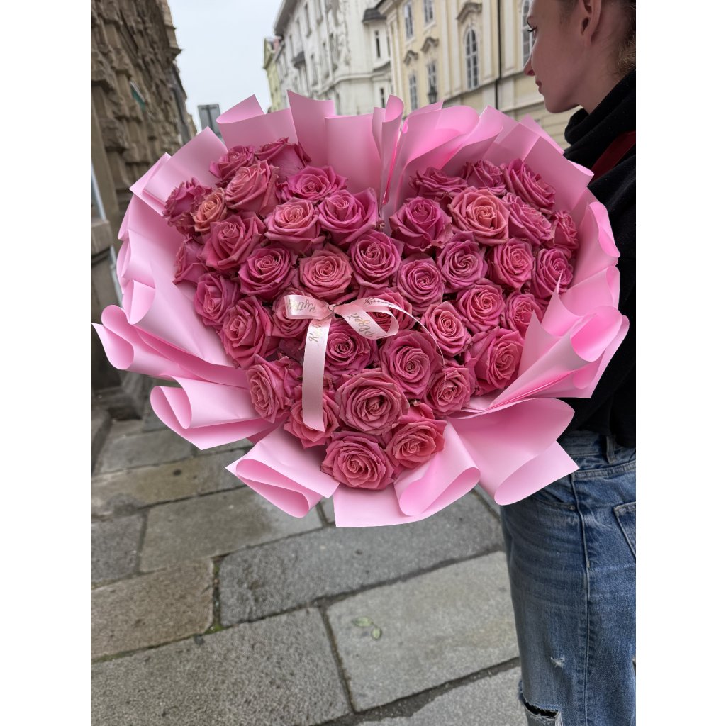 Luxusní květinová vazba ve tvaru srdce, vytvořená z jediného druhu květin – s důrazem na čistotu stylu a výraz emocí.
